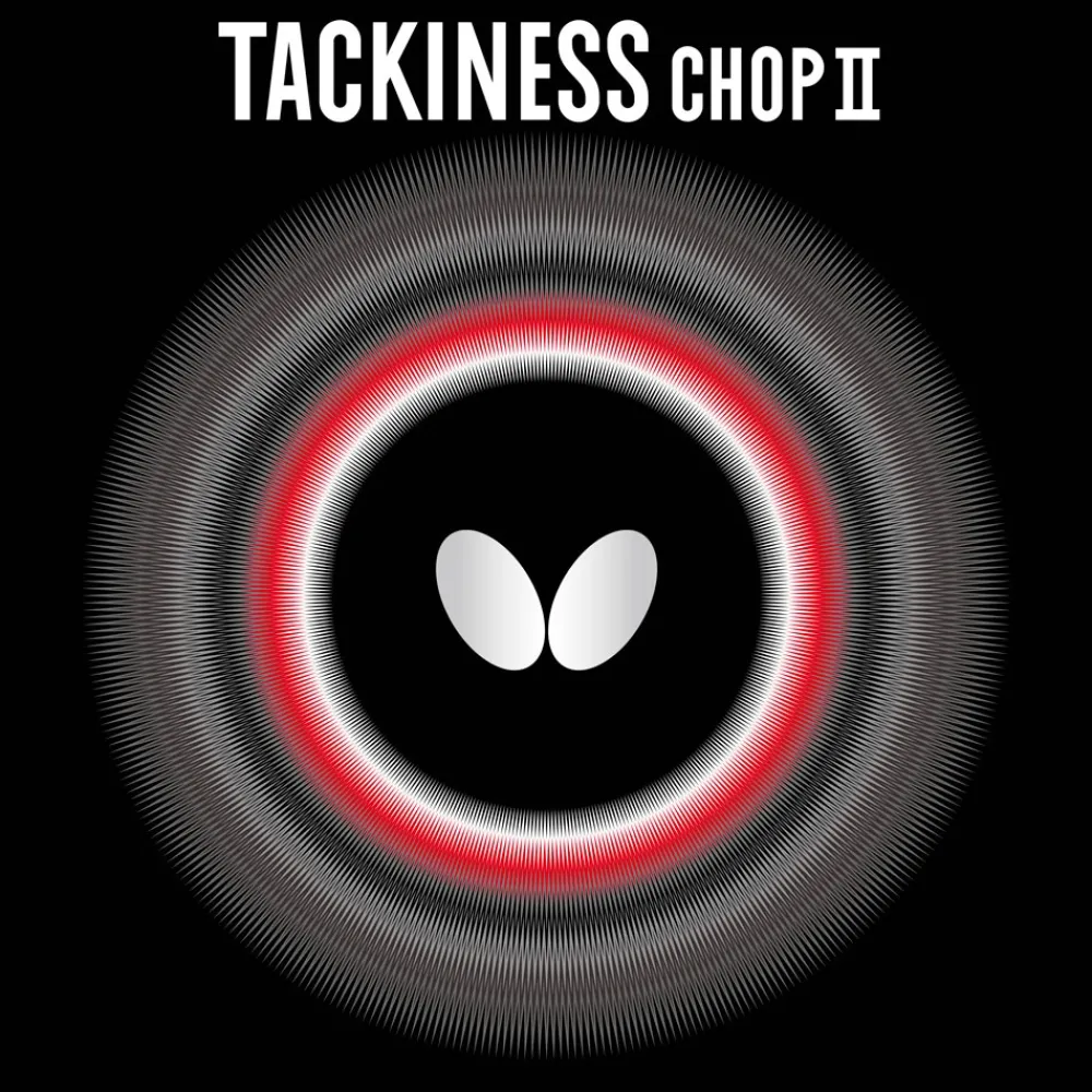 TACKINESS CHOP II er den avancerede udgave af TACKINESS CHOP, som har været populær blandt forsvarere i mange år. På grund af de høje niveauer af friktion på spilleoverfladen kan der udøves tunge rotationer. Denne belægning er blevet udviklet eksklusivt til forsvarsspillere. Det gør det muligt at lave tunge backspin på bolden og er også effektivt til angrebsspil.