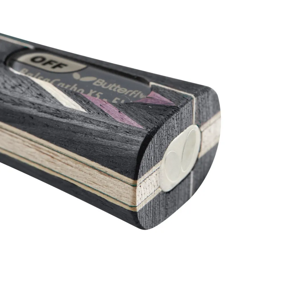 Ved at benytte en kerne af Balsatræ skabes det hurtige og utrolige touch af det berømte 3-lags BALSA CARBO X5, mens de to Carbon fibre giver stabilitet og præcision til dette offensive bat, bedst brugt til kontrollerede blokeringsskud kombineret med hurtige topspins.